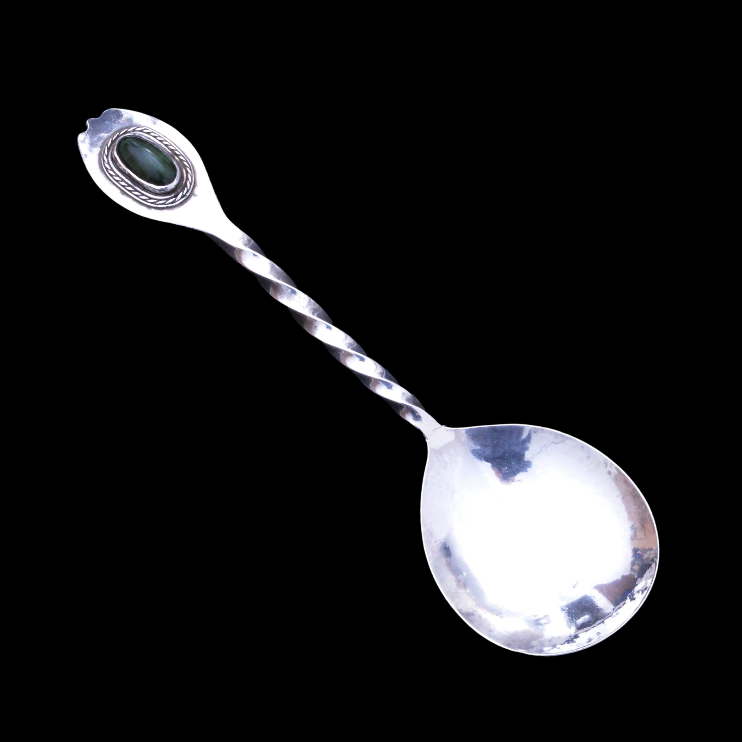 The Collection’s silver spoons and flatware features designs by leading figures of the era. Archibald Knox’s designs, for Liberty & Co’s Cymric range, are celebrated for their Celtic motifs and elegant forms. Omar Ramsden silver, with his hallmark “OMAR RAMSDEN ME FECIT,” is admired for its hand-hammered finish and individuality. Alongside them, the works of Charles Ashbee, AE Jones, and the Keswick School of Industrial Art represent the collaborative spirit and innovation that defined British decorative arts of the period.