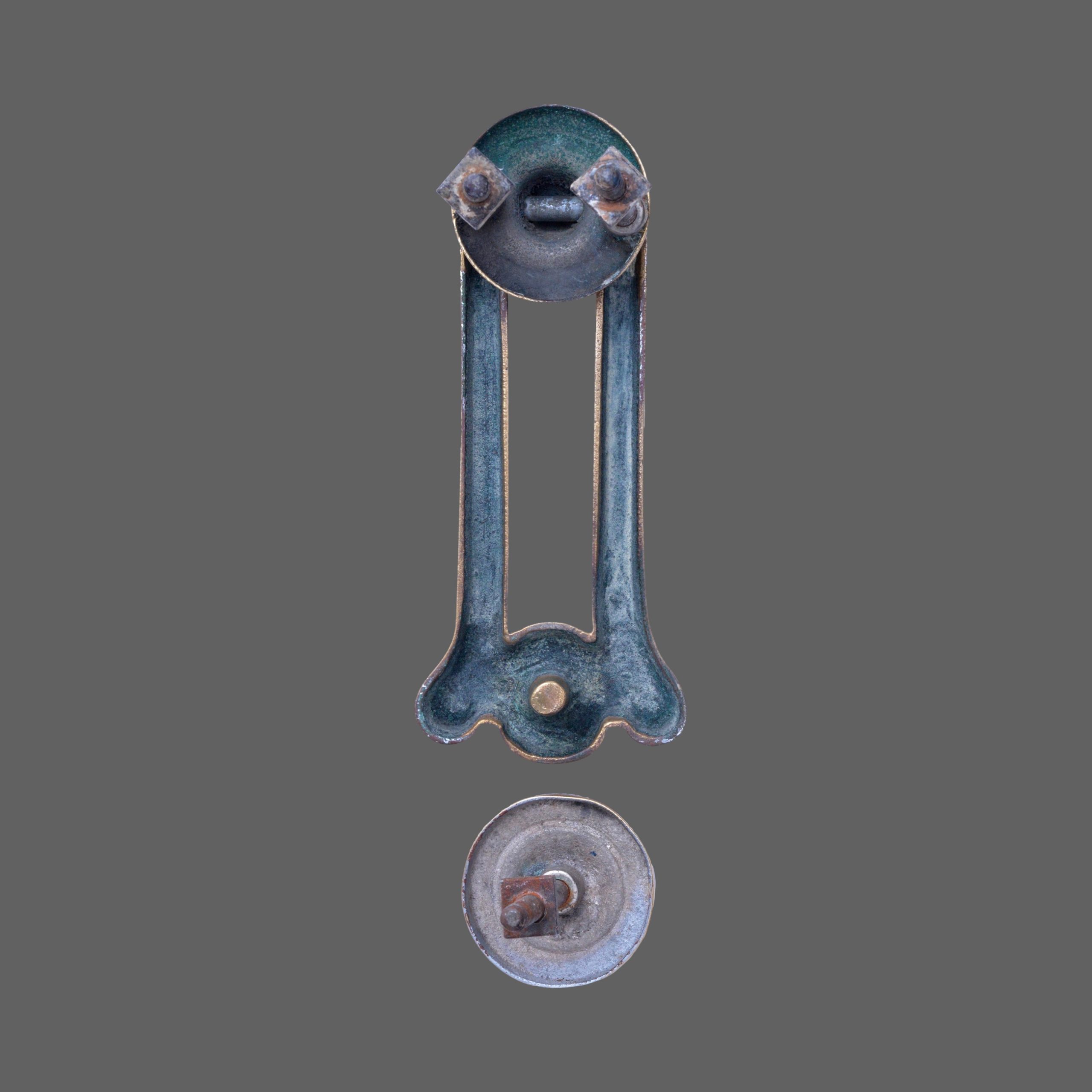 This is not quite my normal thing but I thought a bit of fun and, for the right collector, a perfect and rare piece that could be used on your home. For sale is this brass/bronze door knocker in the style of Christopher Dresser and quite probably designed by Christopher Dresser. I can find no markings on the piece and it does not appear in the books on Dresser so I am cautiously saying “style of”. It is classic Dresser and aesthetic movement design.