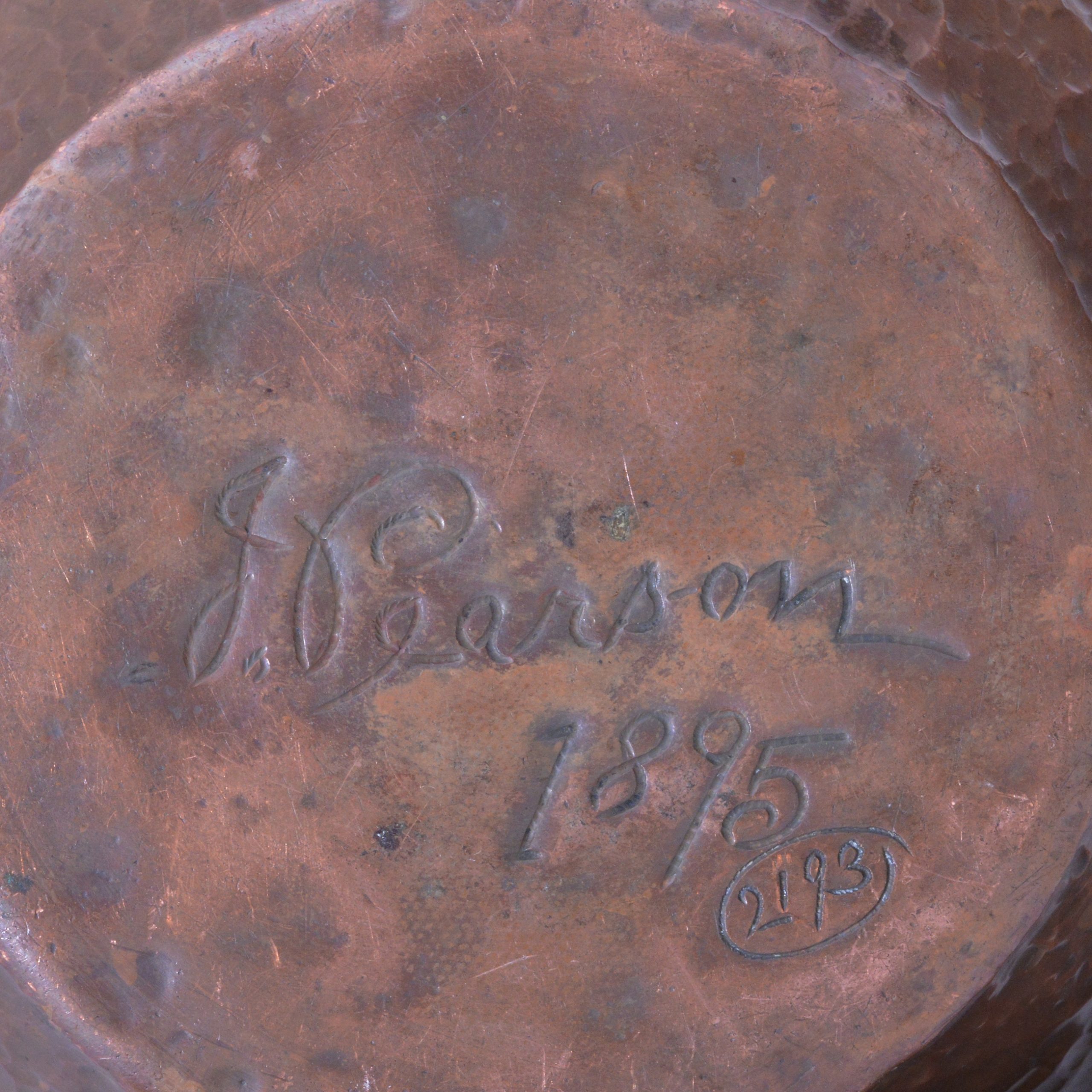 For sale is this very good John Pearson copper vase, signed to the base and dated 1895, when Pearson was working with the Newlyn School having left The Guild of Handicraft. The quality of the workmanship demonstrates Pearson at his very best.