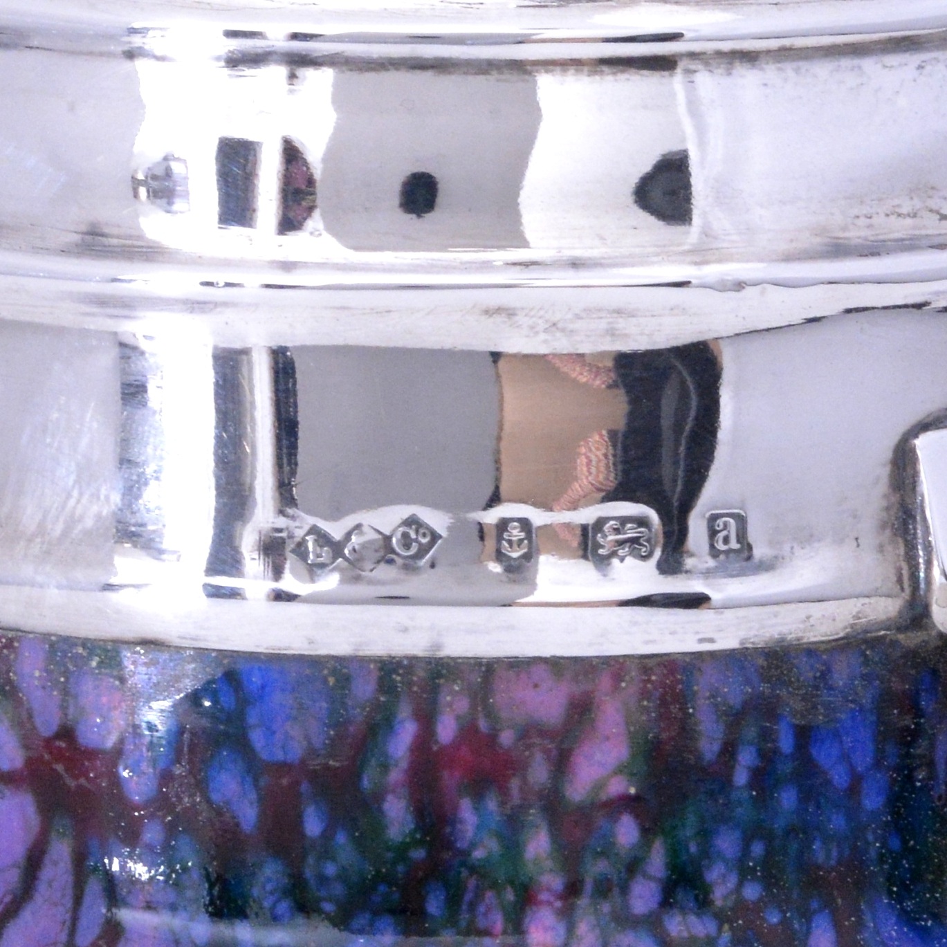 The enamel base to this vase would have been made by Jacob Rapoport, a highly regarded Hungarian enameller who sold his signature marble pinky enamels to both Liberty and Maison Moderne and other art nouveau manufacturers and retailers across Europe c 1900. Based on surviving examples Knox was asked to make a number of silver designs utilising such enamel, all around c 1900-1901. These pieces represent some of Knox’s most avant garde and modernist early works.