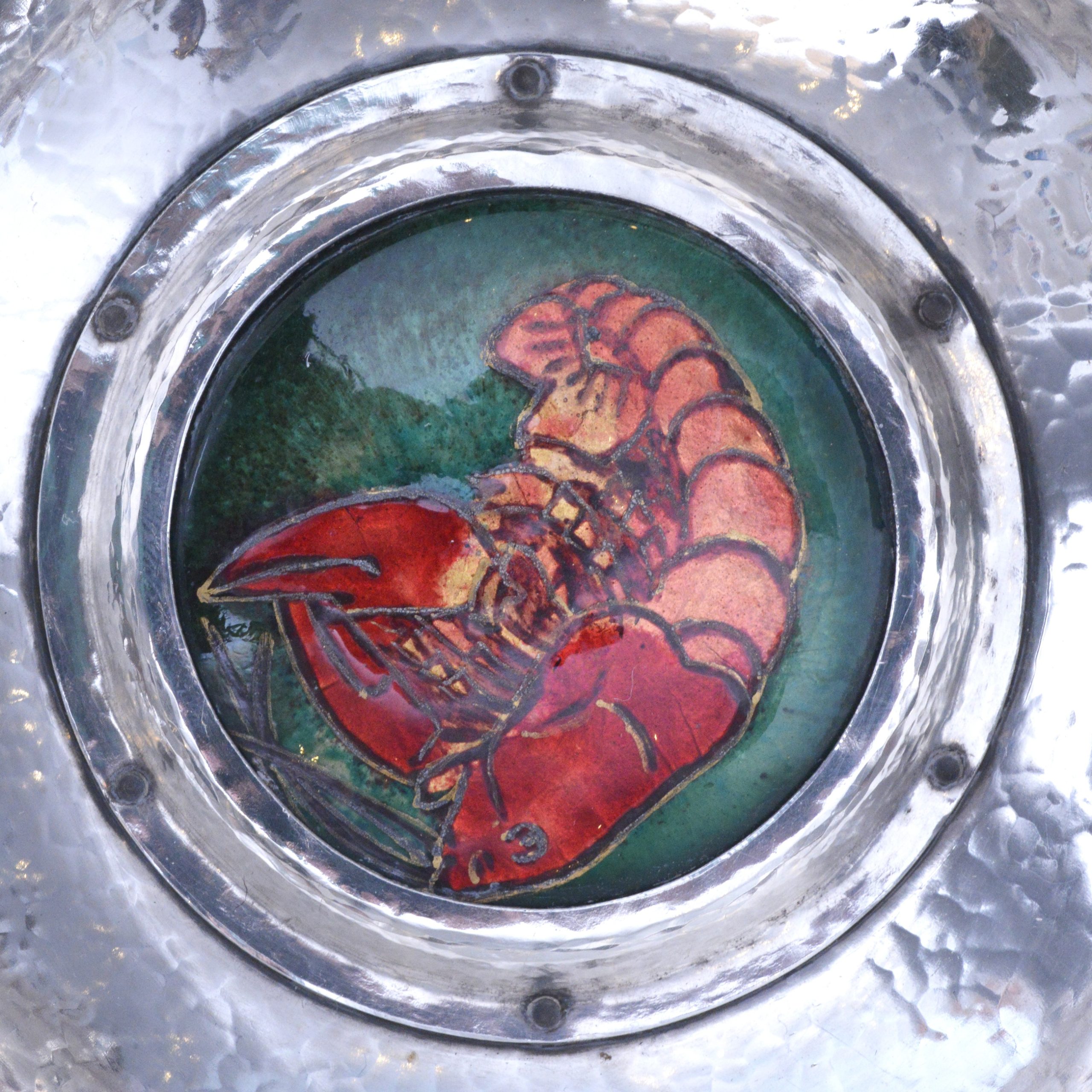 For sale is this quite astonishing set of fourteen William Hadaway silver dishes. Each dish is inset with an enamel of a fish, with one dish having an enamel of a lobster. The condition, colour and quality of the enamels is excellent. The handles of the dishes are of galleons. There are two different galleon handle designs throughout the set, seven of each style. Thirteen of the fourteen dishes are dated for London 1910, one is london 1906 (not the lobster!). Provenance is to a private collection who acquired the dishes at Christies 13th May 1998 lots 286 and 287.